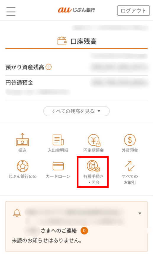1)ログイン後、「各種手続き・照会」を選択