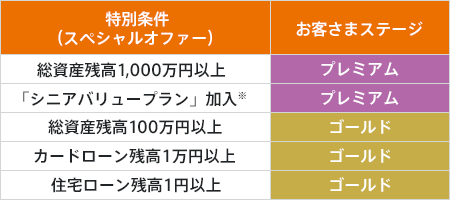 以下の特別条件に該当するお客さまは、獲得スタンプ数にかかわらず、ステージ判定を優遇します(毎月20日判定)。