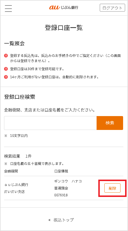 14ヶ月ご利用がない登録口座は自動的に削除されます。